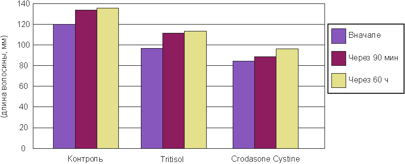 Малюнок 5: Порівняльна довжина пасм волосся, що ілюструє утримання локонів у верхній частині волосся за допомогою Crodasone Cystine.